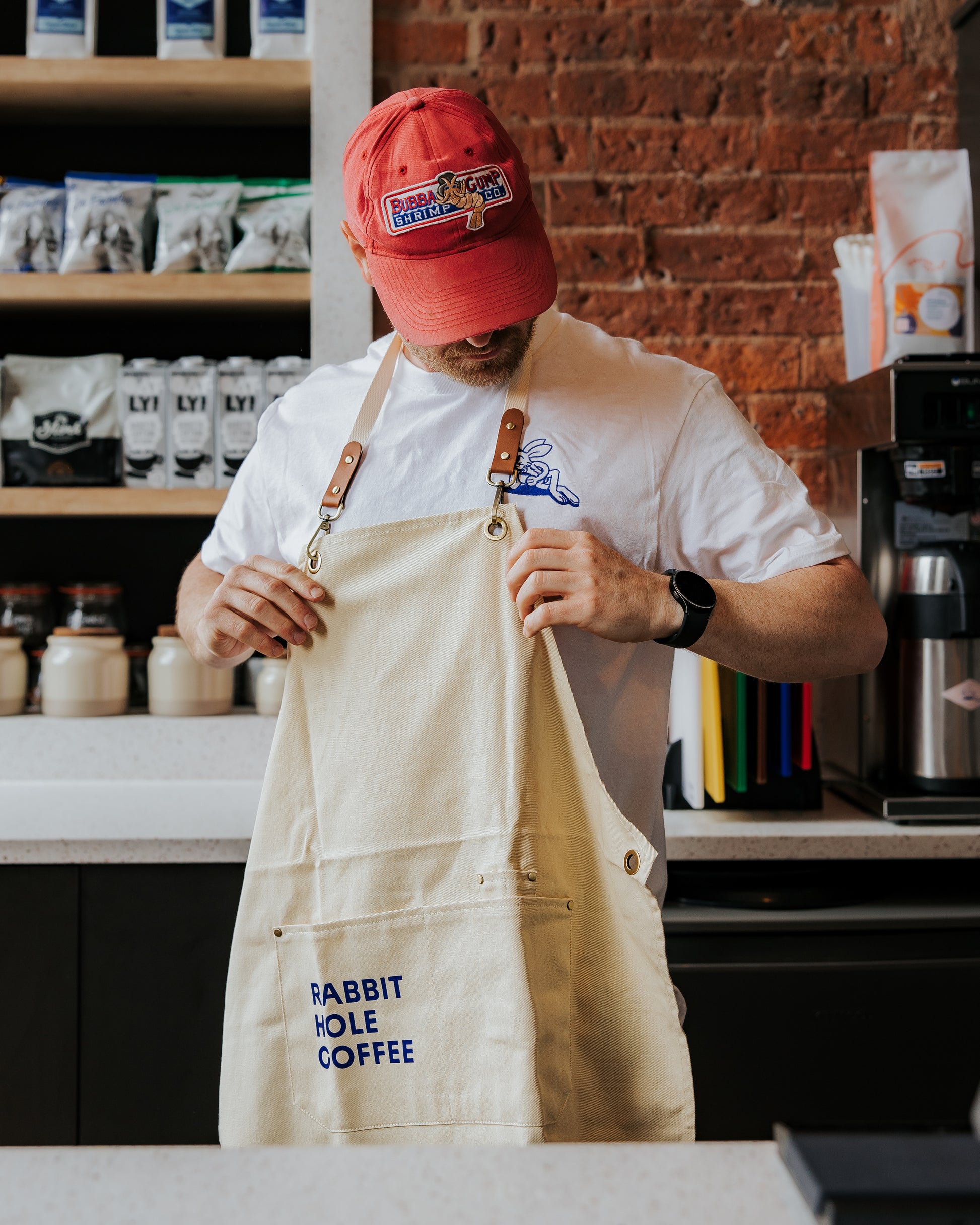 Full disclosure, we're selling these aprons because I got called a fucking moron for ordering light coloured aprons for us to wear in a coffee shop and I'm a big enough person to admit when I've made a bad call.